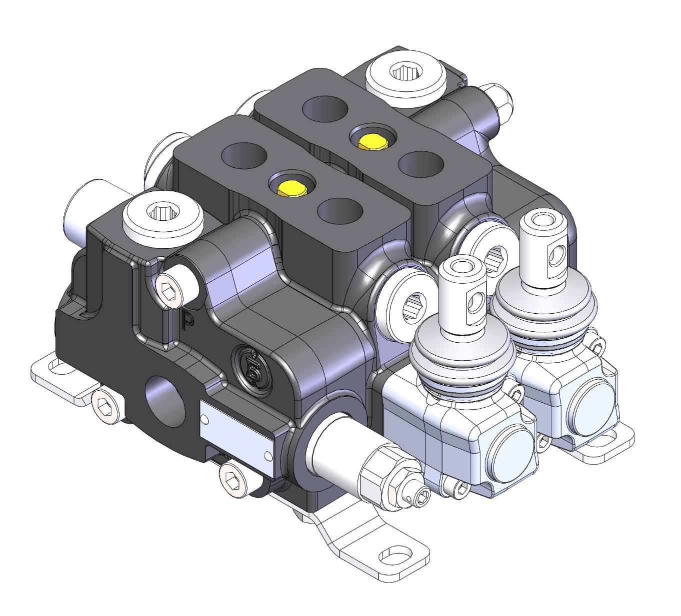 Description: Simple compact and heavy duty design 1 to 12 sections for open and closed hydraulic systems. - Fitted with main relief valve and load check valve on each section - Available in parallel, tandem, and series circuit - Optional power beyond port - Wide variety of port valves - Available manual, pneumatic, electro pneumatic, hydraulic, electro hydraulic, solenoid, and cable control kits. - Interchangeable 16 mm spools.